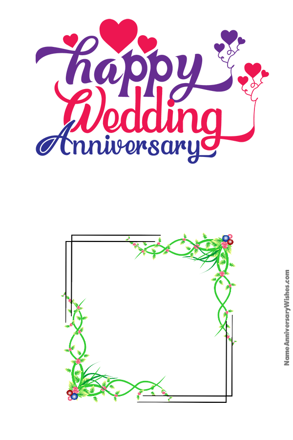Wedding Anniversary Beautiful Anniversary Flower Frame Wish Card With Name and Photo
